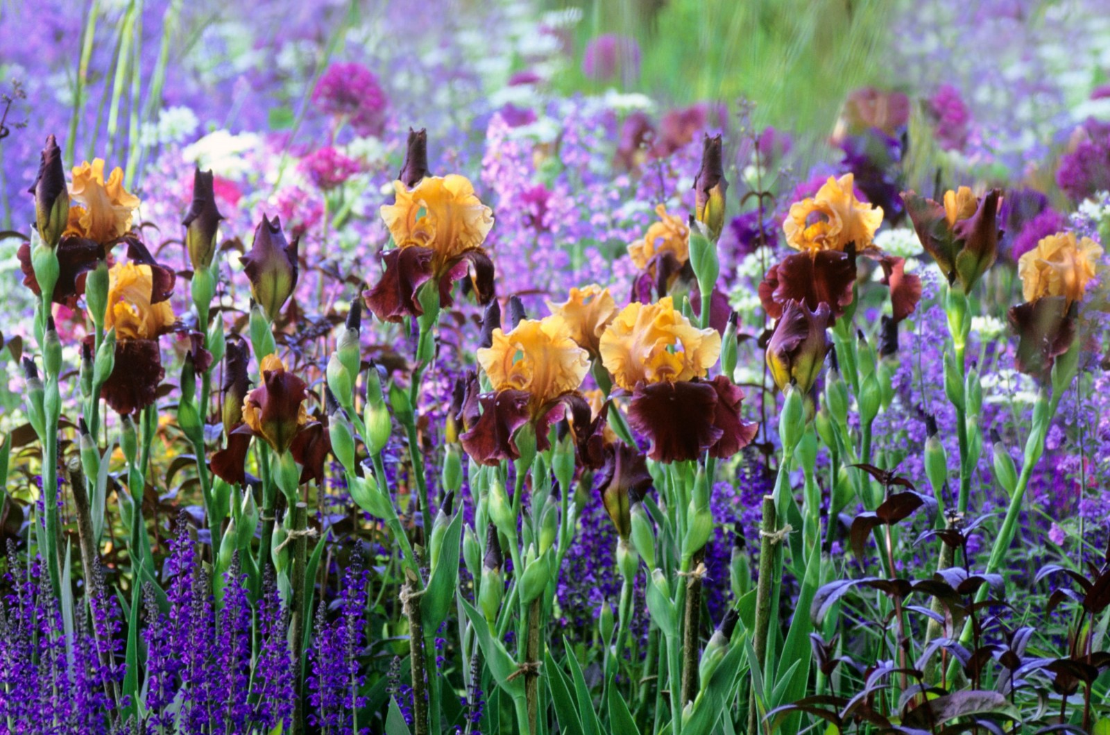Aan de zijkanten zijn er borders met uitbundige vaste planten en stuiken, zoals camelia, hortensia, sering, verschillende bodemdekkers en bloembollen. Rondom de lounge is informele haag geplant, bestand uit verschillende bloeiende struiken. De eettafel, de lounge en de buitenkeuken kunnen in de avonduren verlicht worden. Ook zijn een paar bomen 's avonds verlicht voor de visuele accenten.