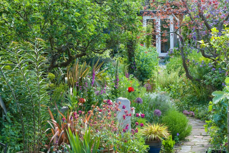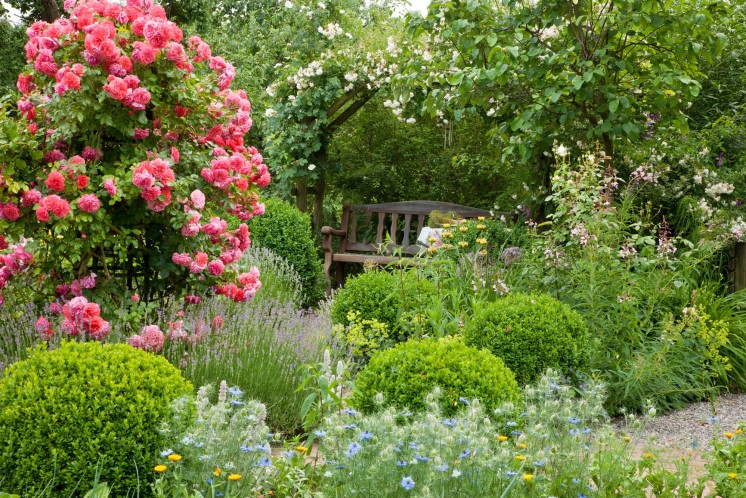 De cottage-tuin heeft een uitstraling van een moestuin die is overgenomen door bloemen.